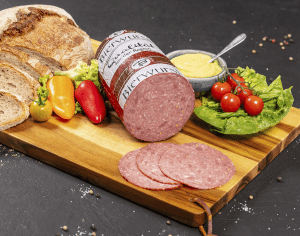Aus einer Mischung von grober Fleischeinlage aus Rind- und Schweinefleisch bestehend, zeichnet sich die Bierwurst durch herzhaft-deftigen Geschmack aus, der vorzüglich zu einem würzigen Bier passt. Daher auch der Bezug zur Namensgebung. Die Brühwurst passt mit Brot und Gewürzgurke trefflich zu einer zünftigen Vesper, kann aber auch leicht gebraten kombiniert werden.