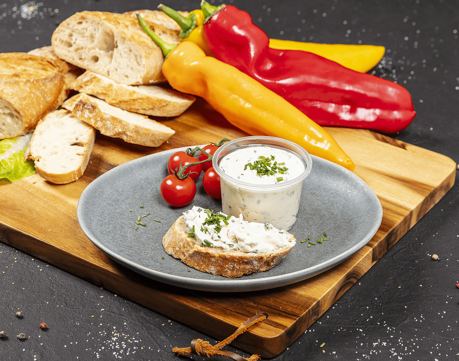 Zur geschmacklichen Kombination unseres Sortiments an Fleisch- und Wurstwaren bieten wir Ihnen auch zahlreiche Feinkostprodukte an. Geschmacklich vorzüglich ist unser, mit frischem Schnittlauch verfeinerte, Frischkäse. Dieser hat einen herzhaft-frischen Geschmack, der jede Brotzeit trefflich ergänzt.
