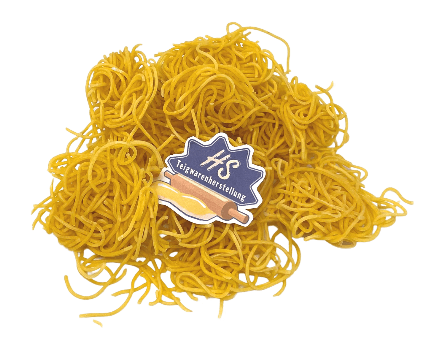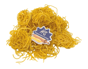 HS Teigwaren Spaghetti. Bester Hartweizengrieß und frische Eier sorgen für höchste Qualität, ein goldgelbes Aussehen und hervorragende Kochfestigkeit.