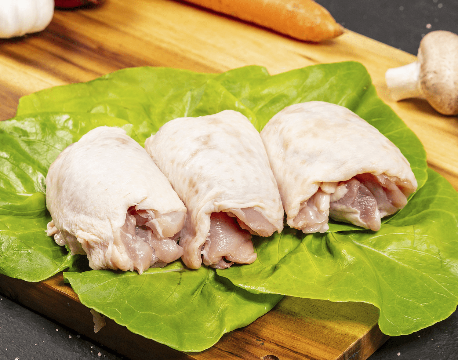 Versuchen Sie einmal diese ausgelösten Schenkel, auch Pollo Fino genannt, vom Hähnchen. Sie werden begeistert sein. Sie eignen sich wunderbar zum Grillen oder Garen im Ofen. Ohne Knochen lassen sich Pollo Fino bequemer essen als Hähnchenkeulen, schmecken dabei aber genauso aromatisch und saftig.
