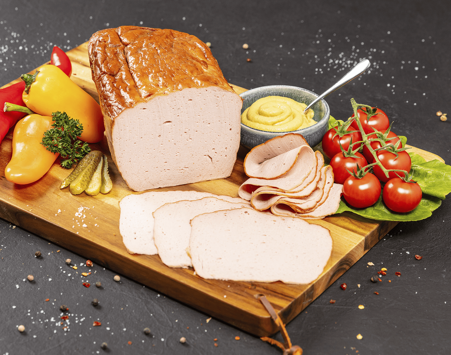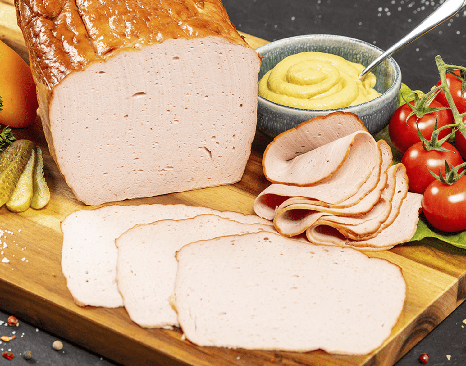 Die Geflügel-Variante unseres hausgemachten Fleischkäses ist ausschließlich aus Putenfleisch hergestellt. Das Brät ist dadurch magerer und besonders fein im Geschmack. Lassen auch Sie sich überzeugen.