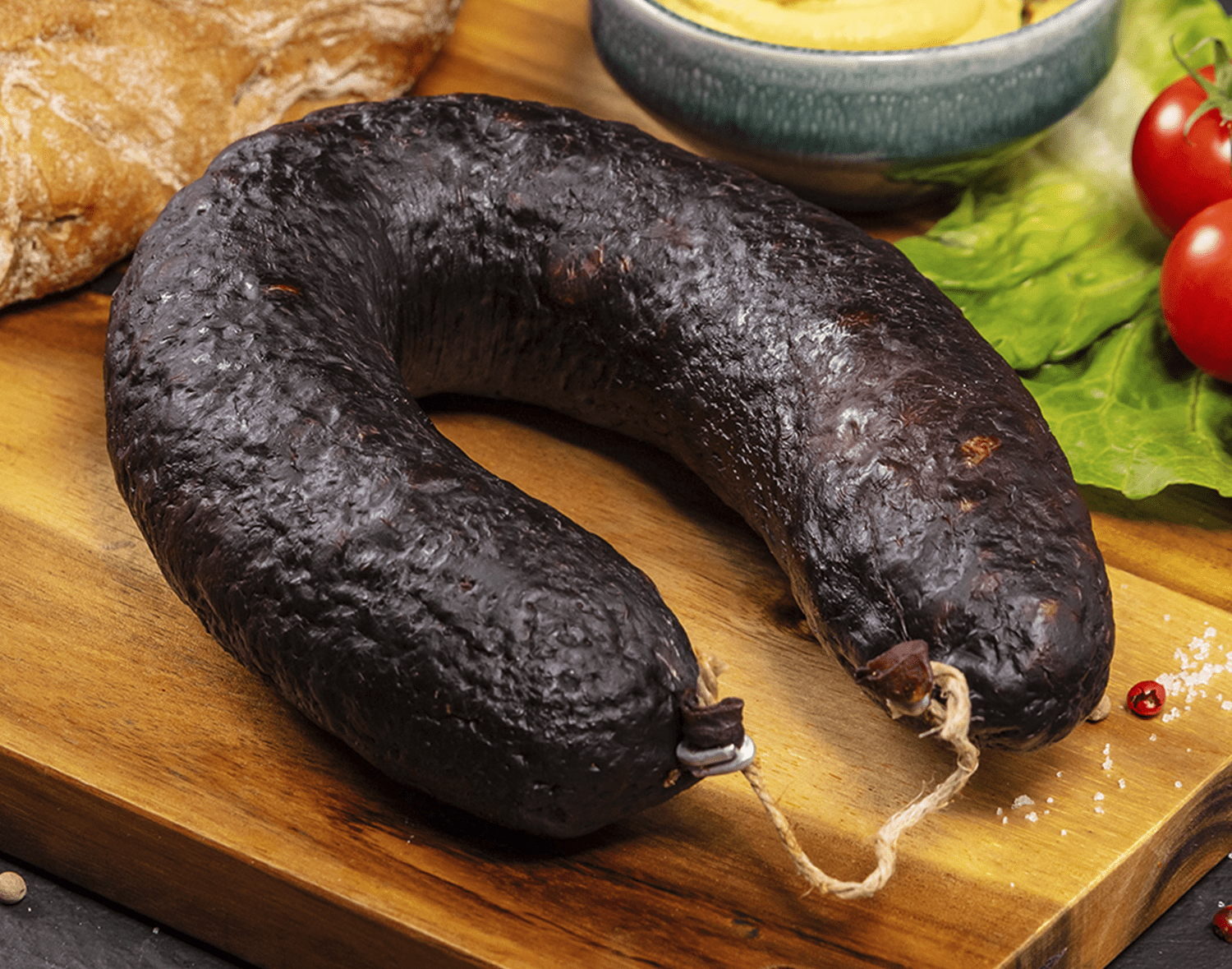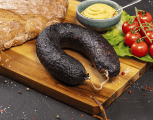 Die mit feinen Speckstückchen versehene Blutwurst hat einen deftig-pikanten Geschmack. Die gebrühte und geräucherte Schwarzwurst eignet sich gut für eine zünftige Brotzeit, kann aber auch dick aufgeschnitten und gebraten werden.