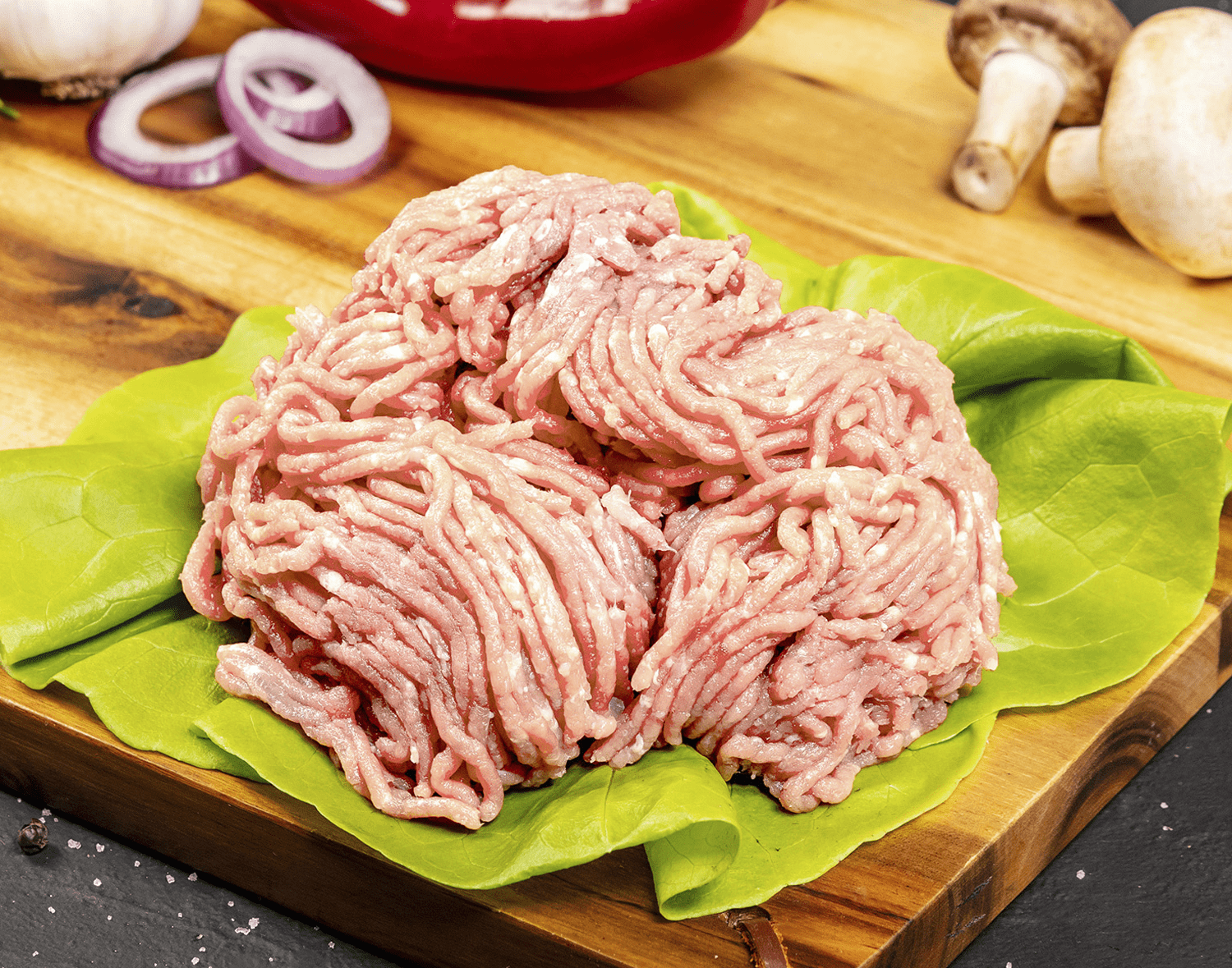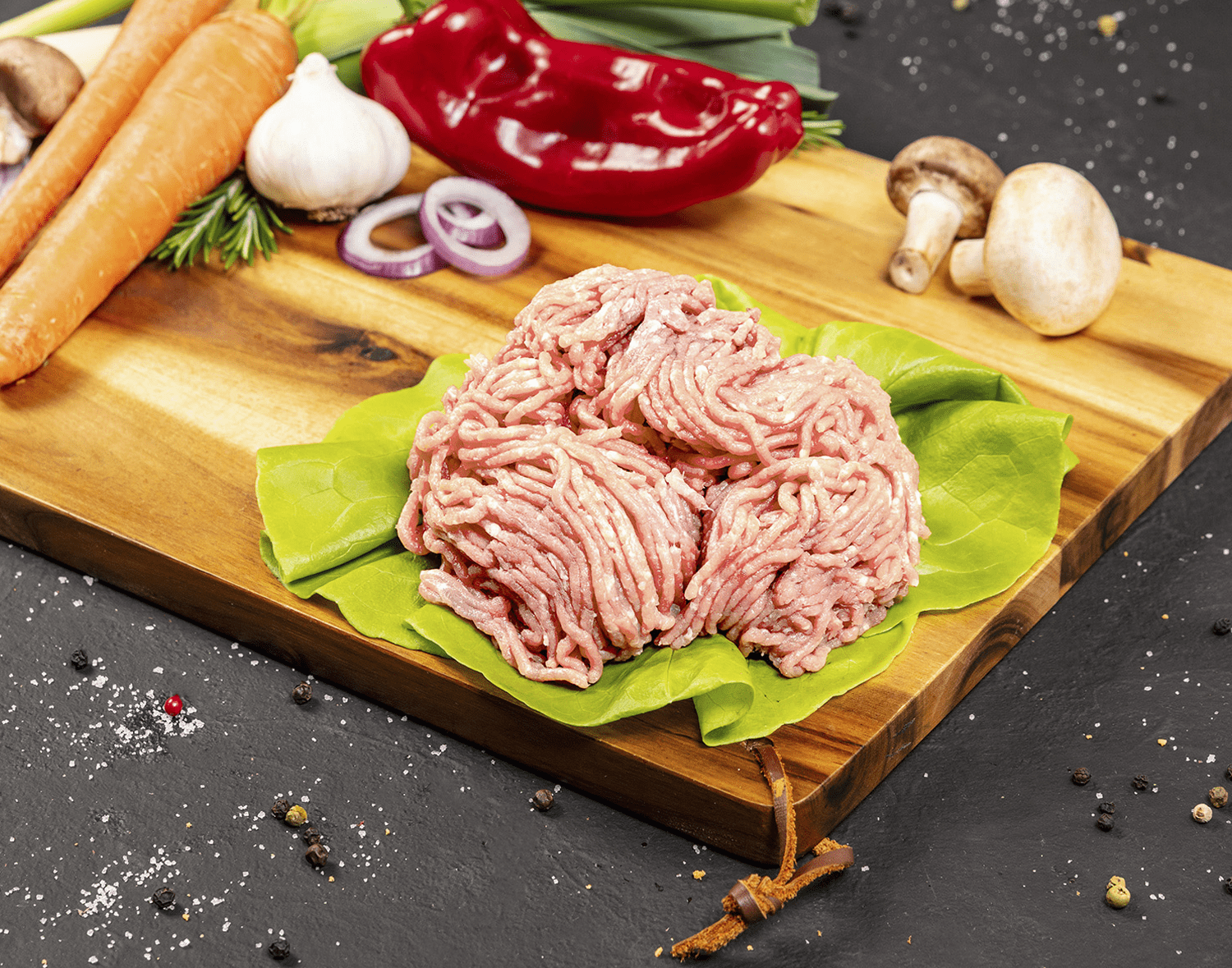 100% Schweinefleisch, sehnenarm und grob entfettet, aus der Schulter und Brust. Ideal für die kreative Küche